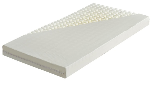 Materac stanowi wyposażenie łóżka szpitalnego, rehabilitacyjnego lub ortopedycznego. Wykonany jest z pianki poliuretanowej o odpowiedniej gęstości i sztywności, posiada wiele punktów podparcia w kształcie gofra, których wielkość oraz sposób rozmieszczenia zapewnia możliwość swobodnego przepływu powietrza odprowadzającego nadmiar nagromadzonej wilgoci, jednocześnie naciskając na ciało chorego powodują wzrost ukrwienia i dotlenienia tkanek. Zapewnia równomierne rozłożenie ciężaru ciała i zabezpiecza przed miejscowym przeciążeniem. Wykonany jest z pianki poliuretanowej i pokrowca zapinanego na zamek, co umożliwia łatwe zdejmowanie w celu wyprania i ponowne założenie. Pokrowiec może być wykonany z dzianiny lub tkaniny zmywalnej ( paroprzepuszczalnej ) umożliwiającej łatwiejsze utrzymanie go w czystości.